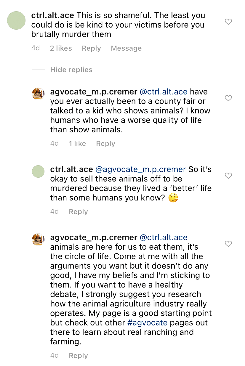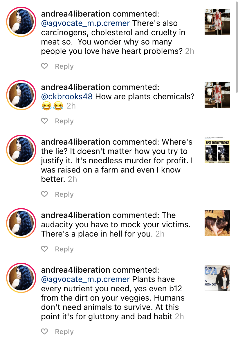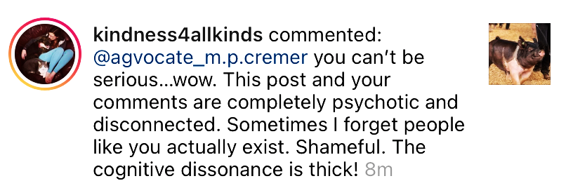 I got attacked this week by an anti-animal ag activist on Instagram.